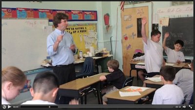 Stream the video of Max presenting the Arm-Wrestling Contest PoW to a different 3rd grade class. He is using the "What Do You Hear?" activity from p. 46 of Powerful Problem Solving.