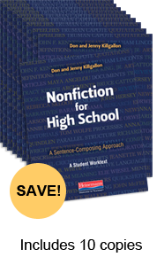 Within each group, using model sentences by authors, students learn and practice words, phrases, and clauses that share the group's function. The Killgallons' accessible approach develops students’ use of twenty-one grammatical tools to build sentences like those of recognizable authors. All tools are practiced through the Killgallons’ signature methods: matching, unscrambling, combining, imitating, exchanging, expanding. Each tool is introduced with a clear definition and characteristics; practiced through six varied sentence-composing activities; then applied in an academic or creative composition that spotlights the tool.