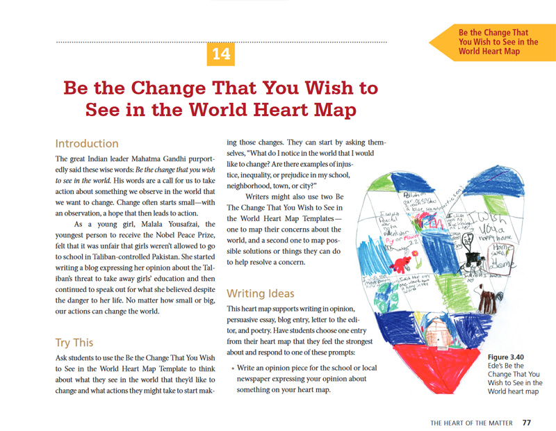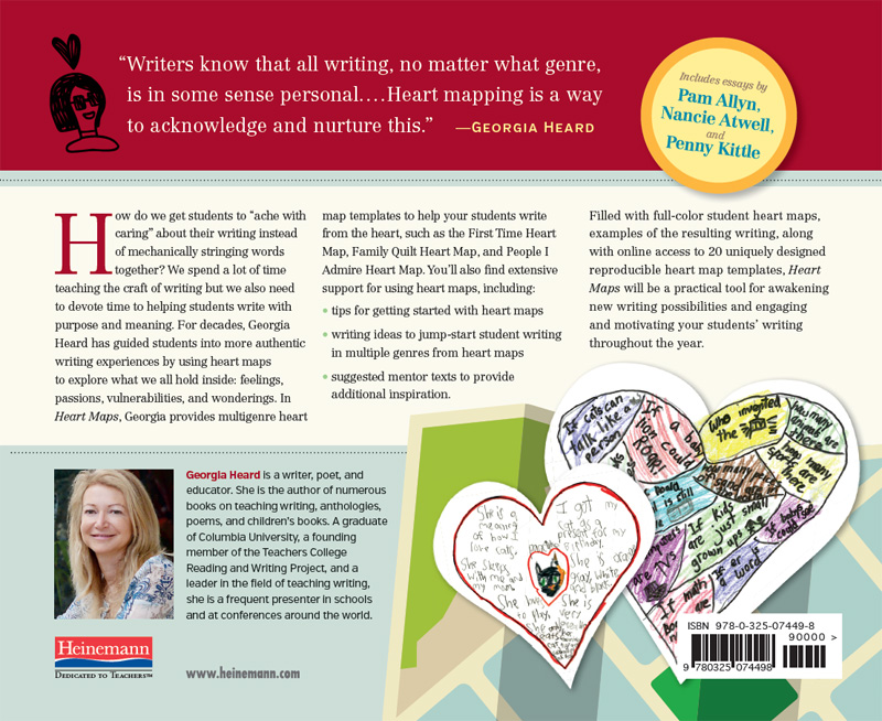 Filled with full-color student heart maps, examples of the resulting writing, along with online access to 20 different uniquely designed reproducible heart map templates, Heart Maps will be a practical tool for awakening new writing possibilities and engaging and motivating your students’ writing throughout the year.