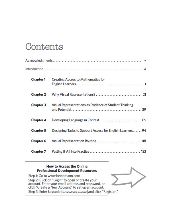 “Unlike most professional development, Mathematical Thinking and Communication does practice what it preaches. It uses visual and structured methods for helping teachers create access for English learners throughout the book. This is a great resource not only for teachers of students learning a second language, but also special educators working with students with communication challenges.”