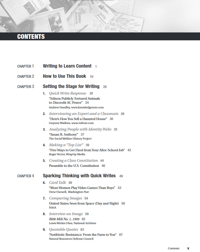 NEW! A new web support feature in this edition includes downloadable copies of all the texts, articles, forms, prompts, and images that accompany lessons. Writing to learn in your content area has never been so cool—or so easy.