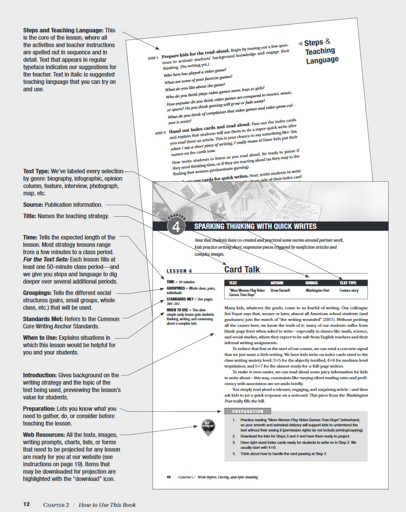 “Using these practical lessons, you can teach your own subject matter in more compelling and memorable ways—and at the same time, help your students become better thinkers and writers across the day and through the year.” —Harvey “Smokey” Daniels and Nancy Steineke