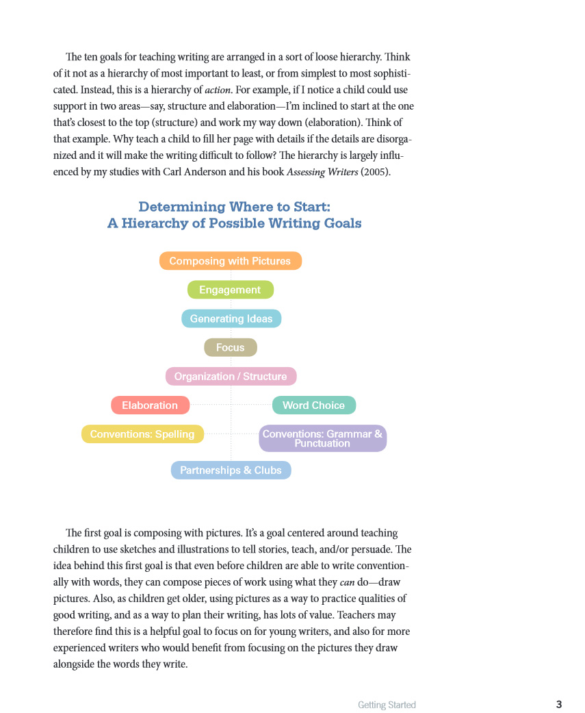“You can think of the goals as the what, “writes Jen, “and the strategies as the how.” From composing with pictures all the way to conventions and beyond, you’ll have just-right teaching, just in time. With Jen’s help you’ll:
