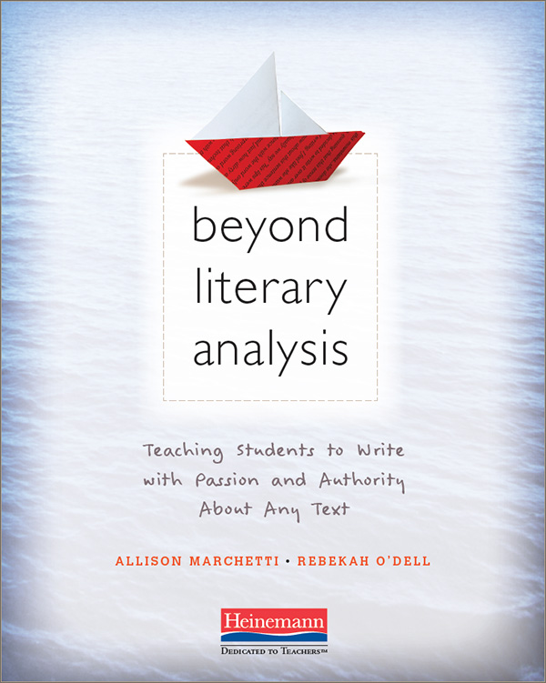 “As tour guides to a brave new world, Rebekah O’Dell and Allison Marchetti reject the well-worn path of literary analysis and guide teachers to a vibrant new analytical landscape. By reframing the idea of text as anything that has a beginning, middle, and end, O’Dell and Marchetti entertain a “bigger vision for analysis,” that helps students find their passion, explore their ideas, assert authority, and build solid structures for writing. Divided into three sections, the book offers an inquiry into traditional analysis, a compendium of practical lessons, and an exploration of sub-genres, such as writing about movies, music, sports, and video games. In addition, this book is chock full of dynamic mentor texts and classroom-ready techniques that will free your students to explore the vistas vital to their lives.”—Liz Prather, author of Project-Based Writing