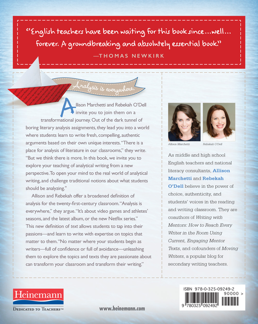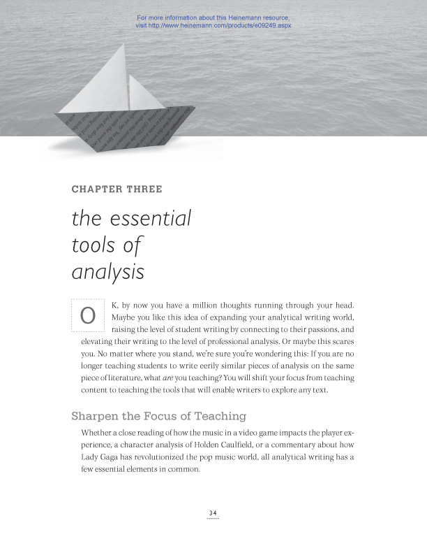 “English teachers have been waiting for this book since...well...forever. Allison Marchetti and Rebekah O'Dell breathe new life into that semi-comatose assignment—the analytic essay. They ask us to totally reimagine it, to examine how analysis works "in the wild" —on blogs, web sites, Internet reviews, and to expand the range of "texts" students can analyze (music, video games, sports teams, movies). Then drawing on their own classroom work, they show how students can use the lessons from mentor texts in their own writing. A groundbreaking and absolutely essential book.” —Thomas Newkirk, author of Embarrassment and Minds Made for Stories