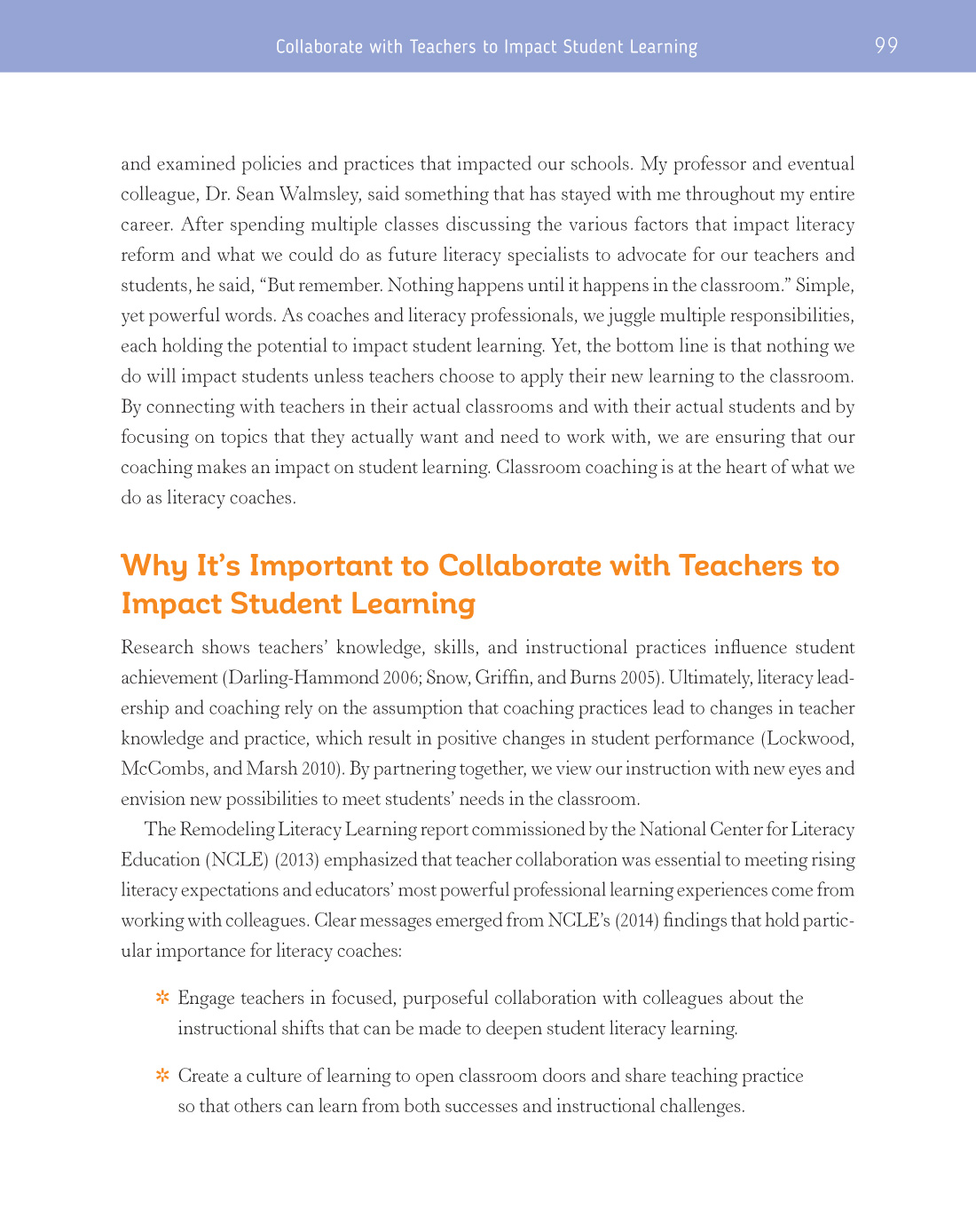 Intentional classroom coaching is at the heart of our work. In Chapter 4, you will reflect on your own coaching experiences and the decisions that drive your work in classrooms. I will share digital ways to plan, organize, and conference with teachers to elevate the level of literacy instruction in classrooms. In the final chapter of the book, I urge you to find inspiration for your continued journey. Inspiration can come in many forms: seeking out others, fueling your own professional learning, and staying connected. You will learn how to organize yourself for the journey ahead and take care of your professional digital footprint.