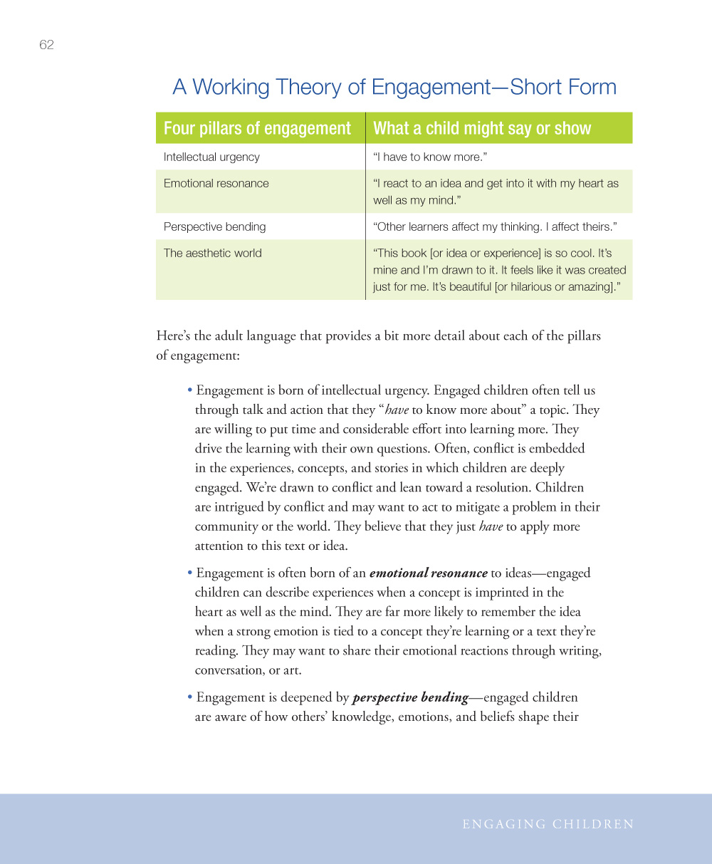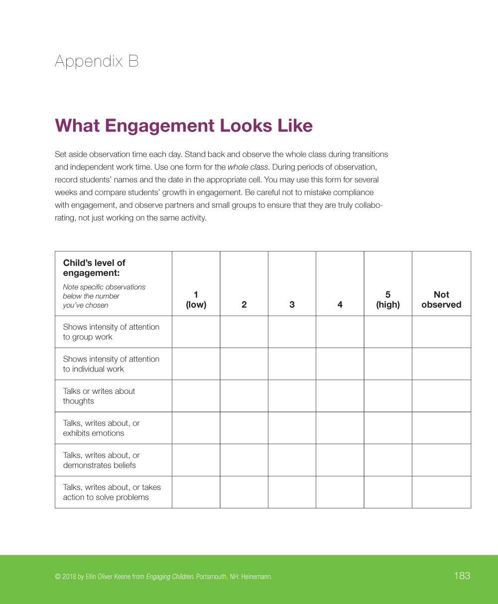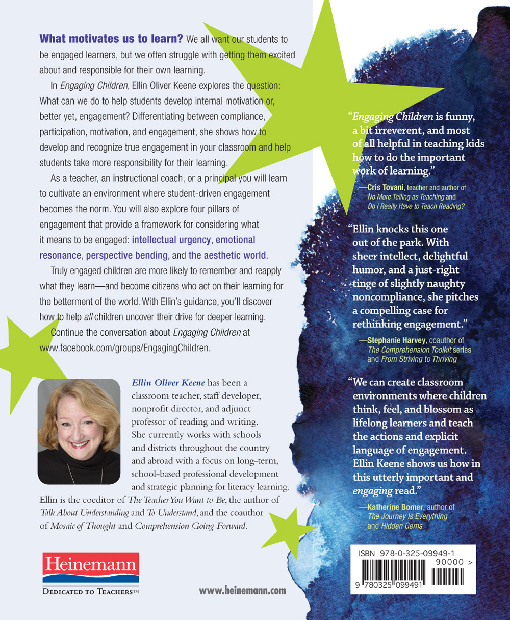 In Engaging Children, Ellin Oliver Keene explores the question: What can we do to help students develop internal motivation or, better yet, engagement? Differentiating between compliance, participation, motivation, and engagement, she shows how to develop and recognize true student engagement in your classroom and help students take more responsibility for their learning.