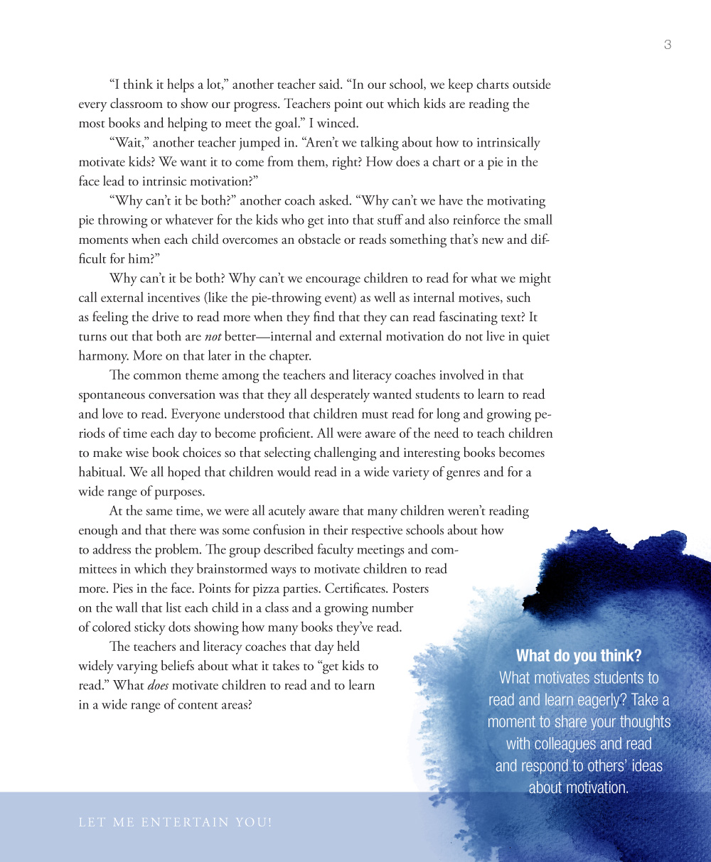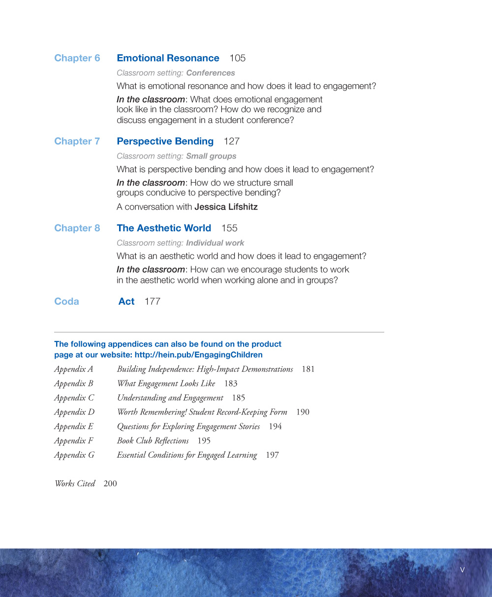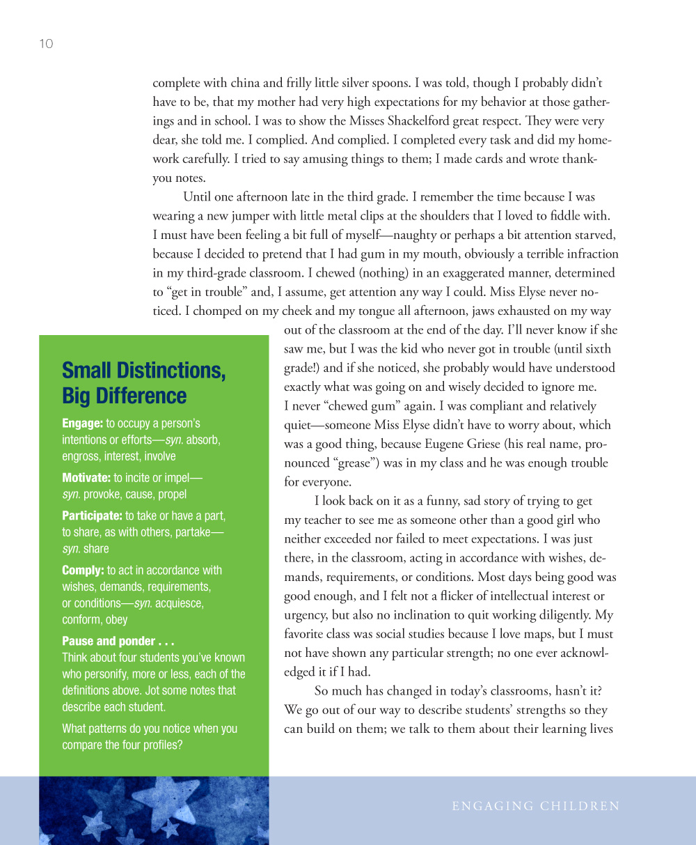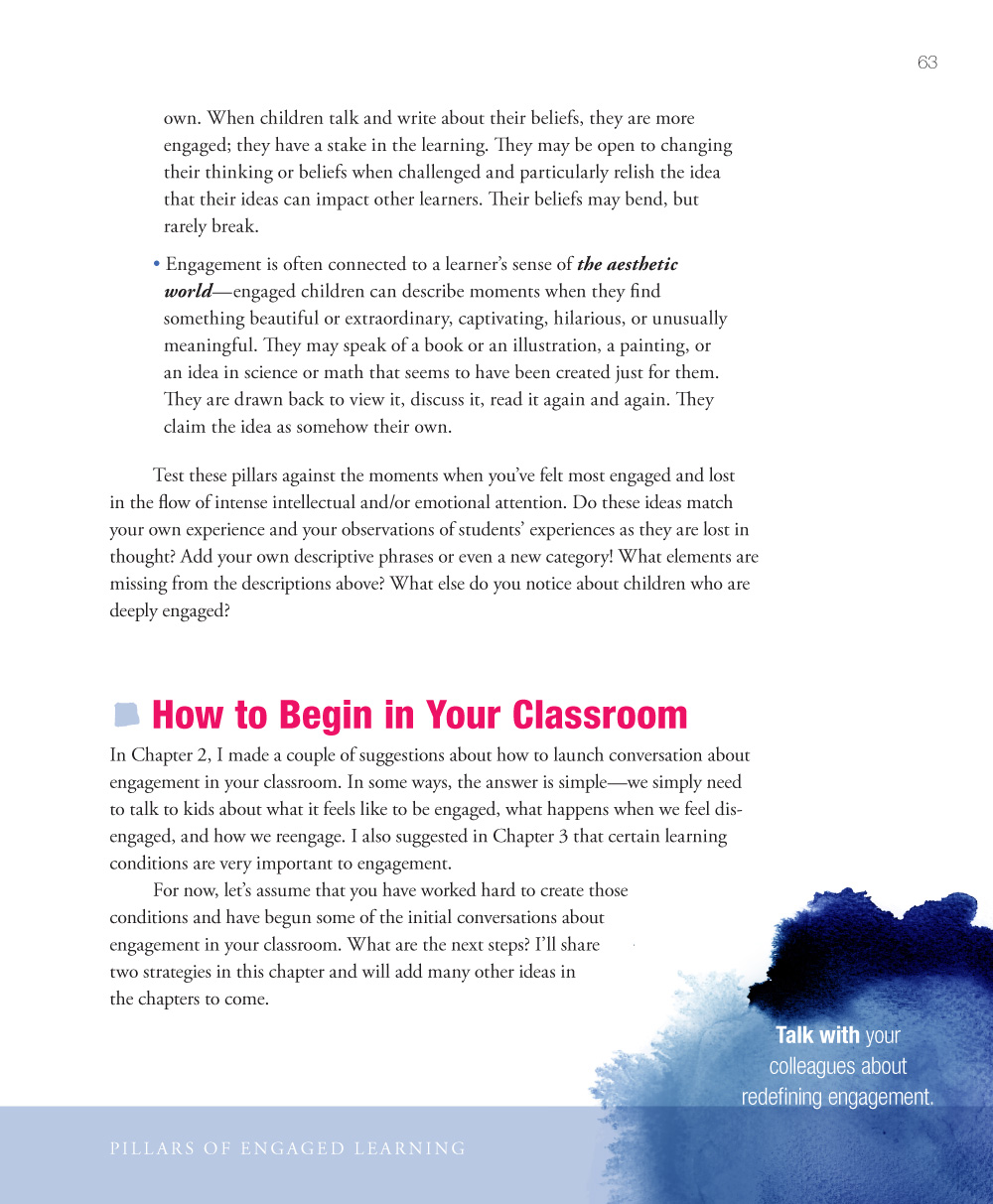 In Engaging Children, Ellin Oliver Keene explores the question: What can we do to help students develop internal motivation or, better yet, engagement? Differentiating between compliance, participation, motivation, and engagement, she shows how to develop and recognize true student engagement in your classroom and help students take more responsibility for their learning.