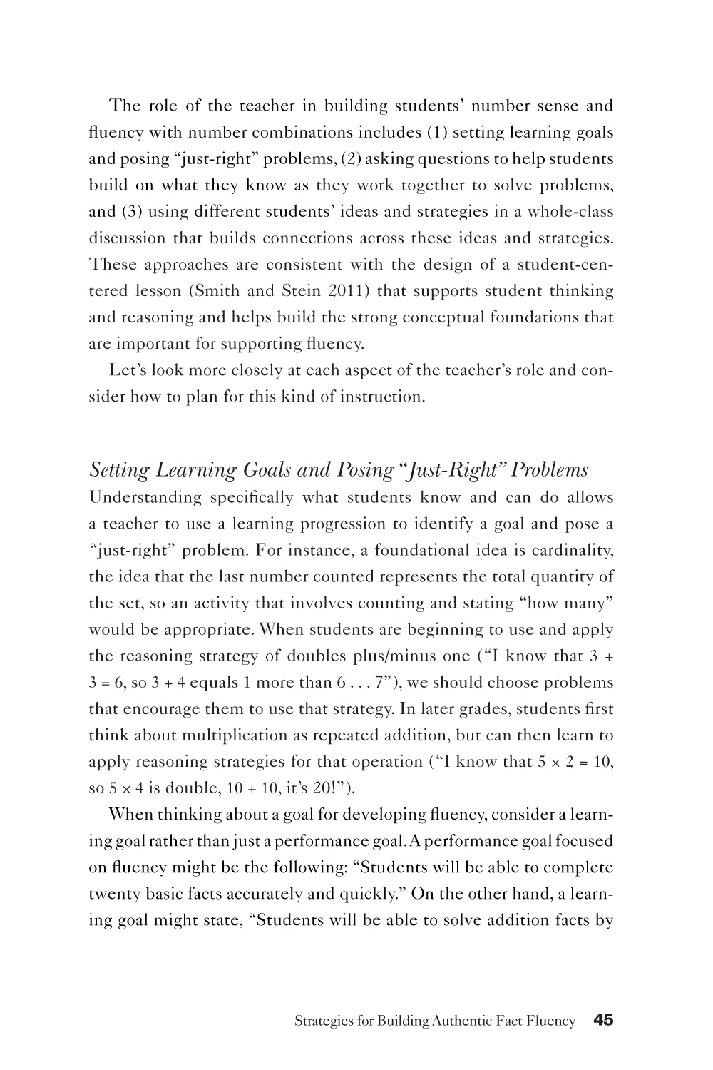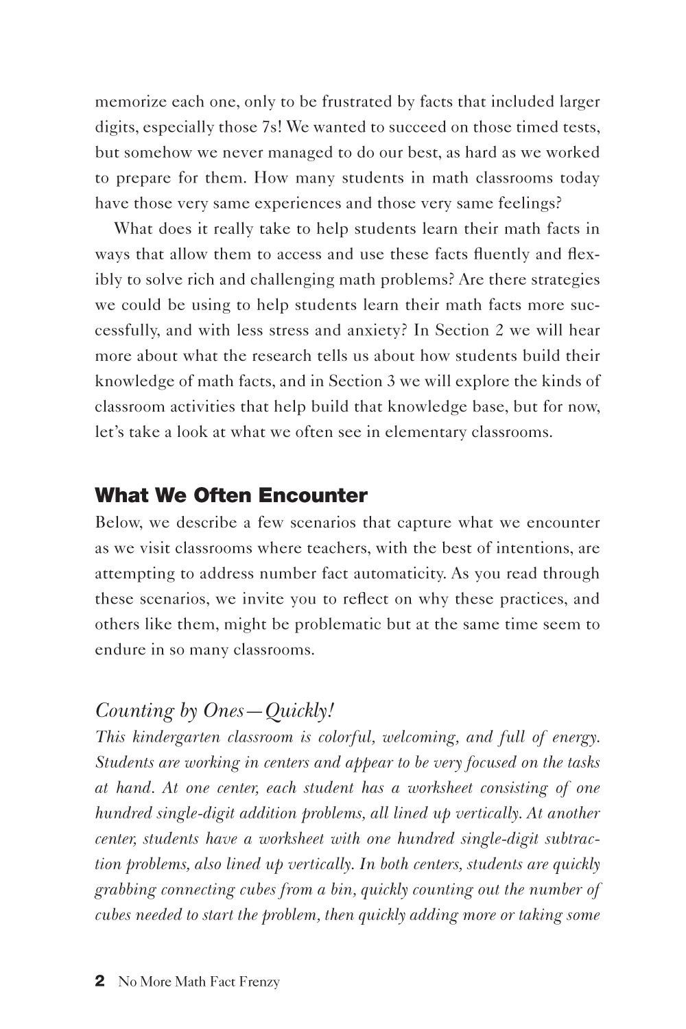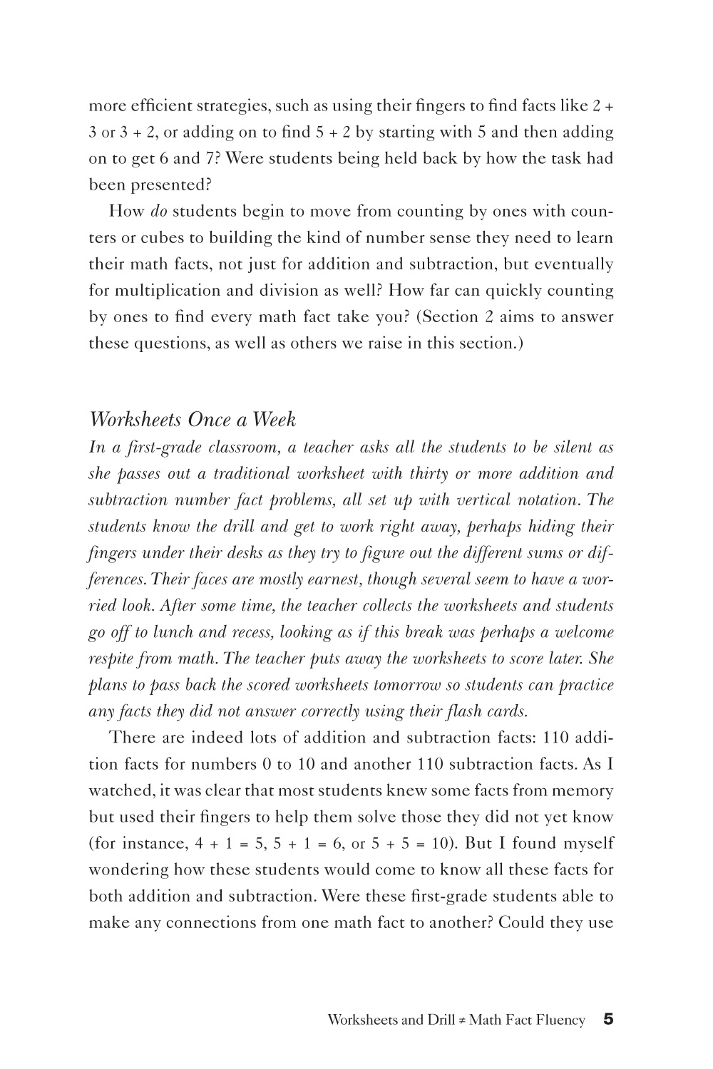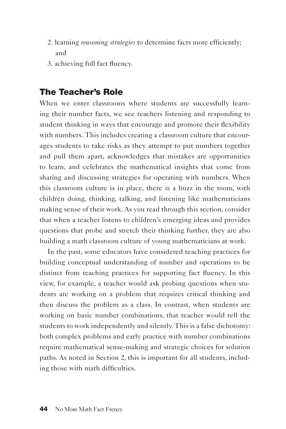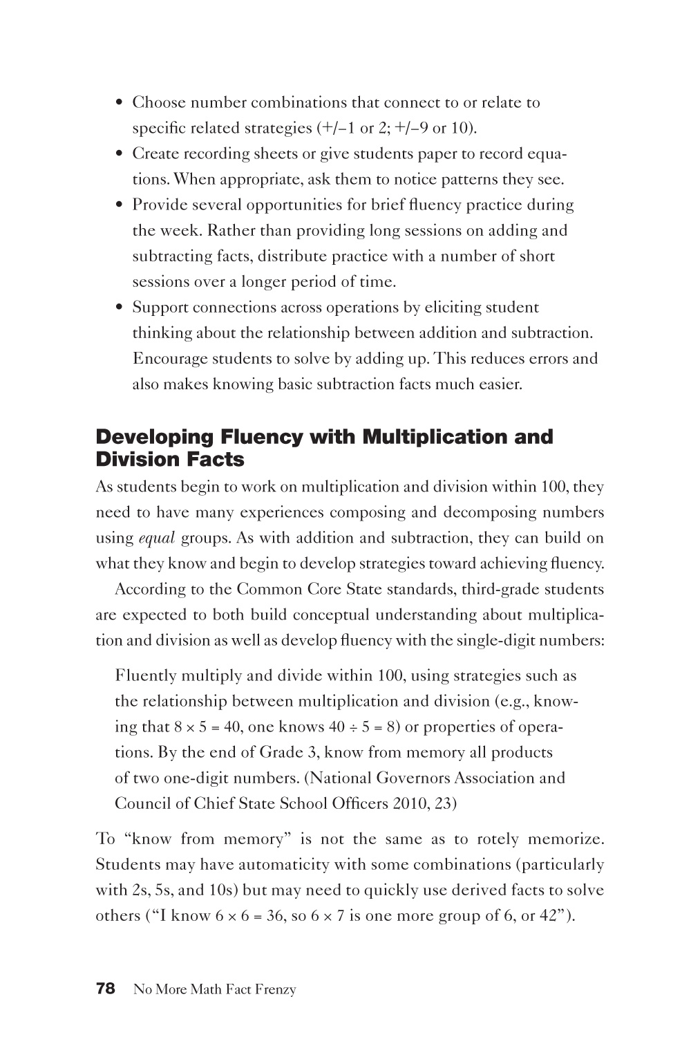 Then they share recommendations for all three phrases: activities and games that build number sense, strategies that lead to flexible thinking, and ways to create and sustain a classroom culture of fluency. This kind of teaching helps students learn their math facts more successfully—and with less stress and anxiety.