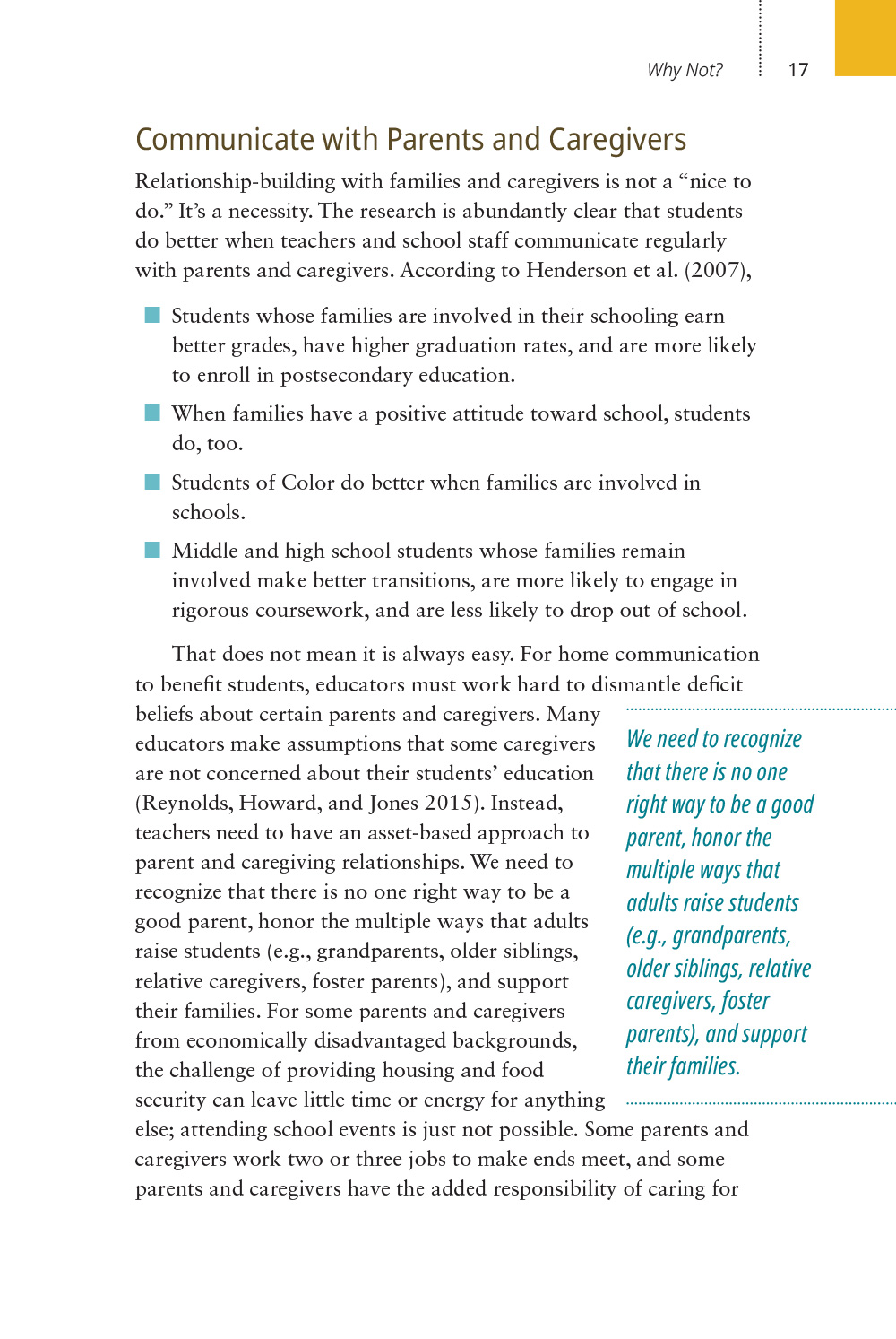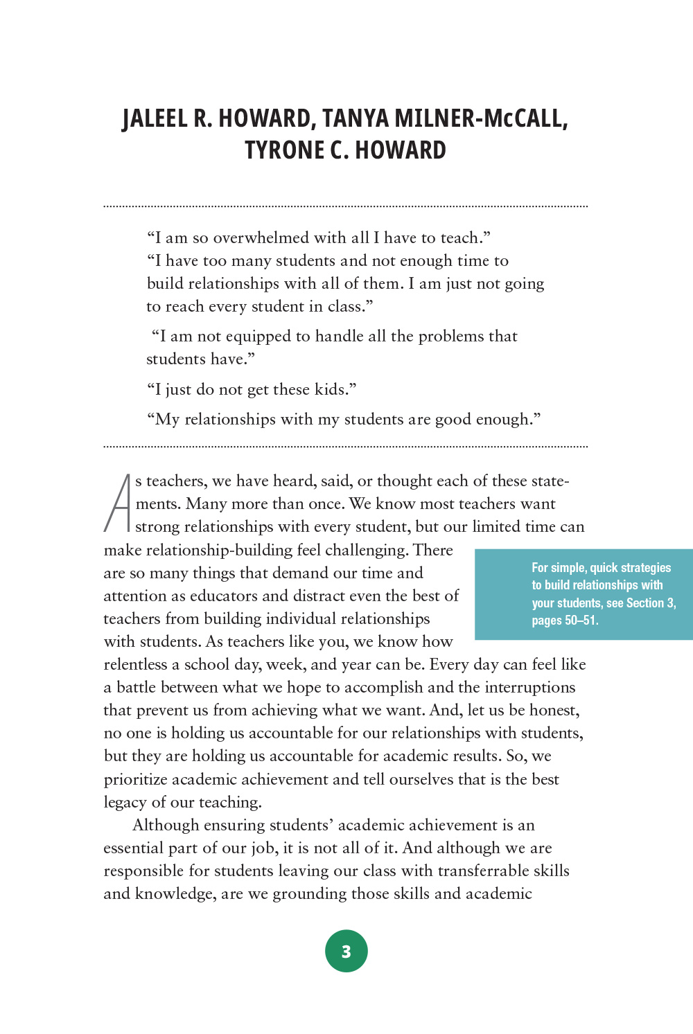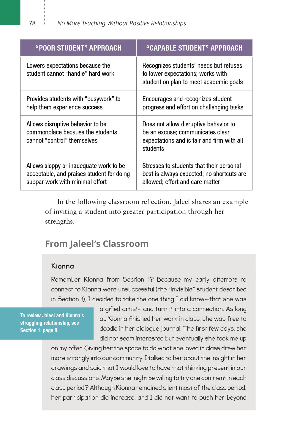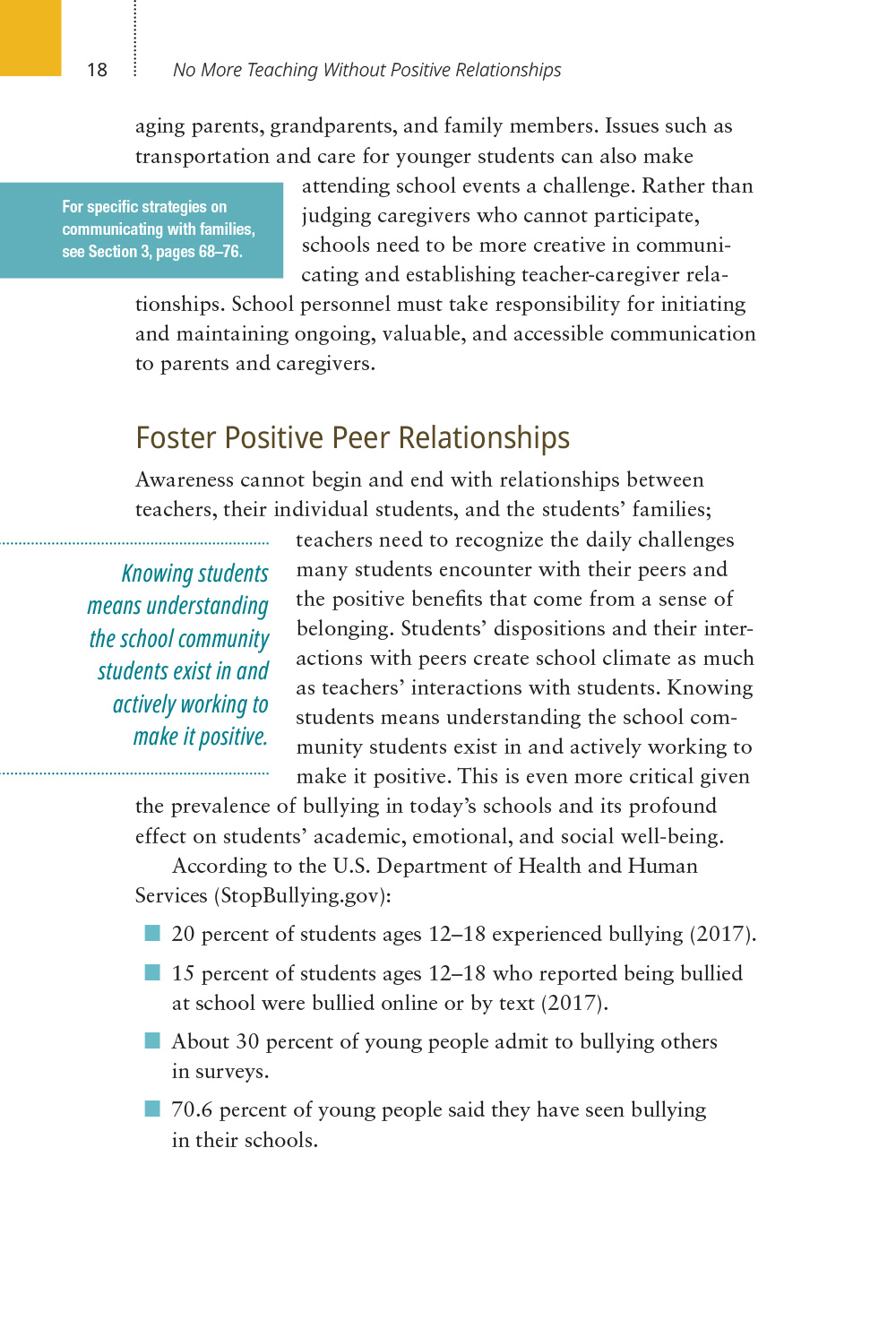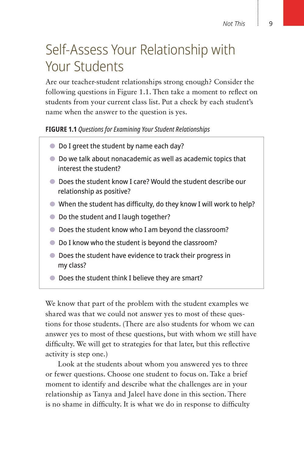 To learn, students need positive relationships with their teachers. So what gets in the way and how can we do better? Since there is no one way to make every relationship positive, authentic, sustainable, and trusting, the authors provide a range of strategies for building and maintaining connections with students. They also discuss critical considerations such as: