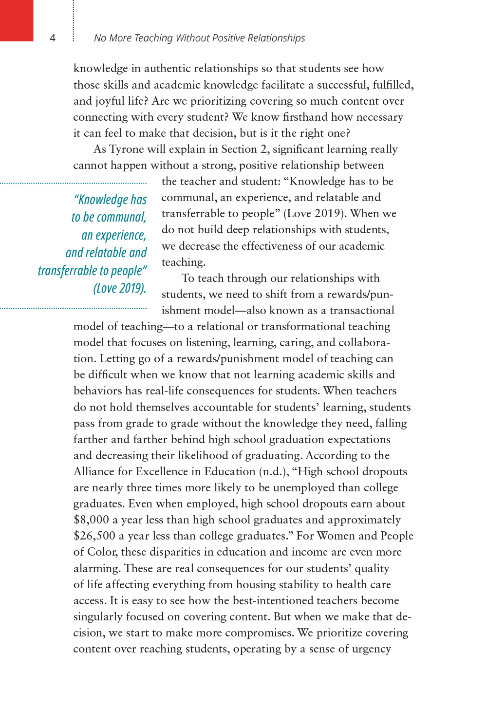 Positive teacher-student relationships do not just transform student learning—they also create more stimulating and caring classrooms. A true relationship is dynamic, often requiring a change in behaviors and mindsets. It can be intense work, but it is the kind of work that can change a student’s life.