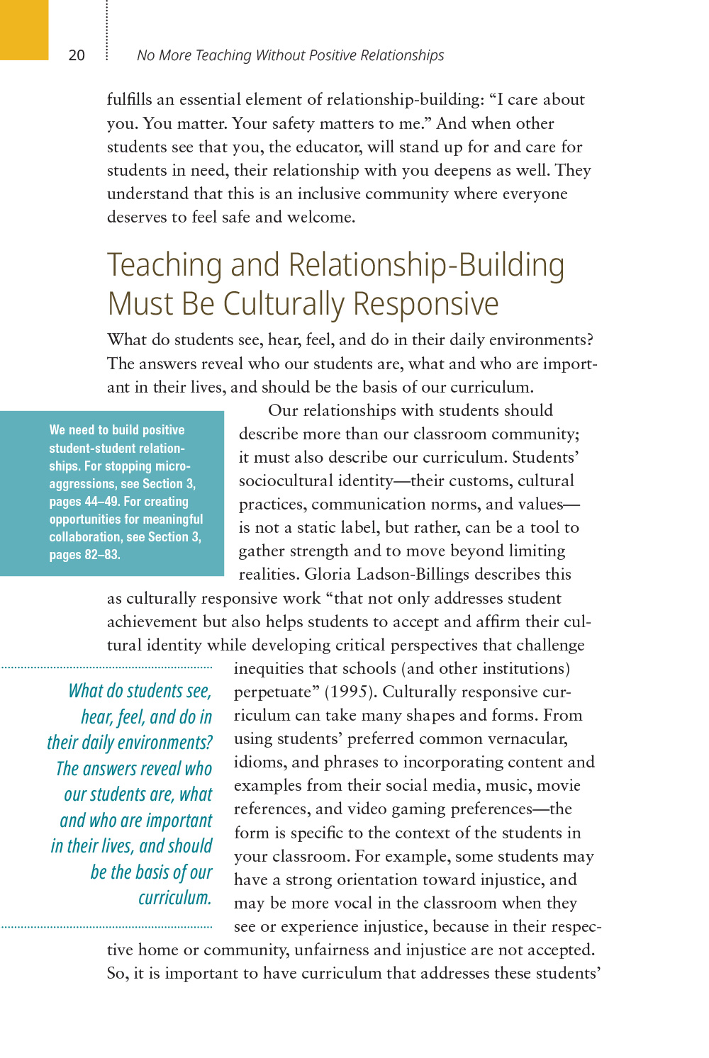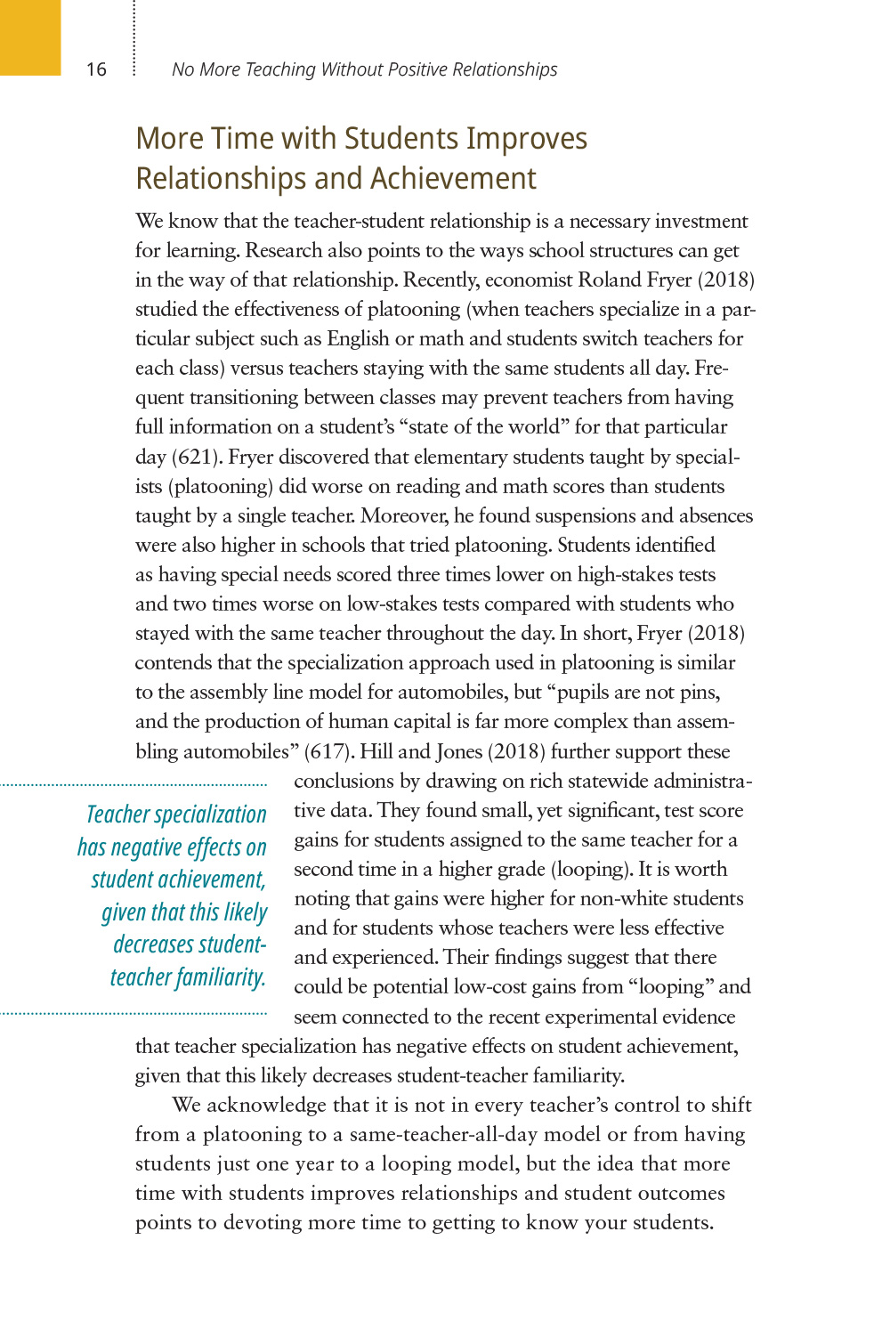 Teachers know the importance of strong relationships with their students, but sometimes connecting with them feels challenging. No More Teaching Without Positive Relationships reviews the teacher-student relationship research and provides practices for building relationships that make a difference.