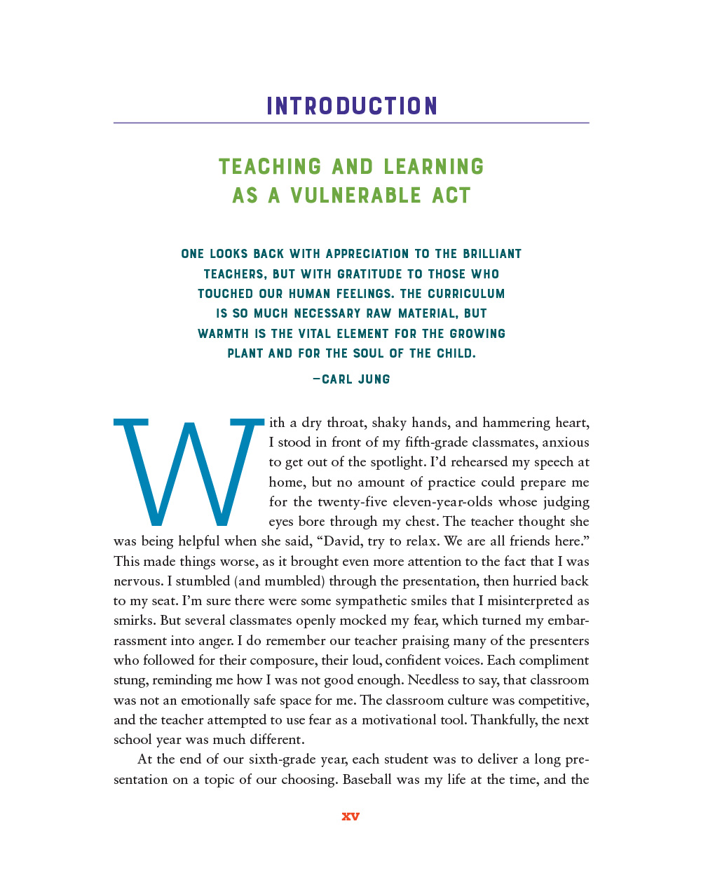 David identifies three dimensions of what it means to teach with vulnerability (personal, relational, and dialogic), and shows what each of these dimensions look like in the classroom. Action steps teachers can take to implement the qualities of vulnerable teaching are offered alongside student activities that build trust, engagement, and community. Most importantly, David illustrates the transformational impact on student learning that results when teachers lean into their own discomfort and share personal stories, write with their students, and navigate difficult classroom conversations.